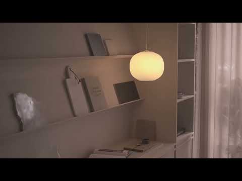 Navone is designed by Danish design studio Studio Mavro//Lefèvre by Sofie Lefèvre. The overall shape of the shade is soft and round, yet the very subtle curved bottom adds a new interesting dimension that transforms the lamp into more than just a sphere. The brass details add a contemporary touch, underlining the suspended lightness of the lamp.